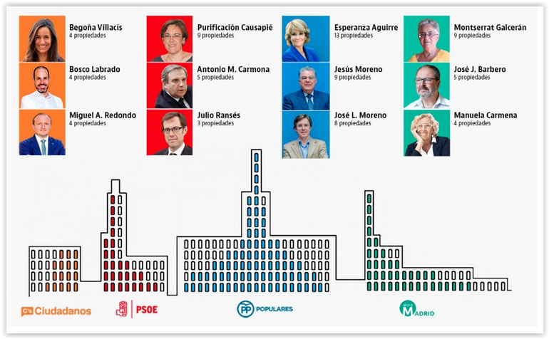 El patrimonio de los ediles madrileños: de las 13 casas de Aguirre a las 9 de la concejal de los okupas.
